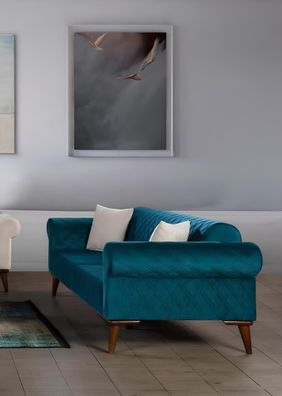 turkis Dreisitzer Samt Couch Wohnzimmer Couchen Sofa Elegante Sitzmöbel Sofa