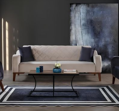 Sofa Couch Dreisitzer Wohnzimmer Stoff Sofas Couchen Möbel Einrichtung Beige