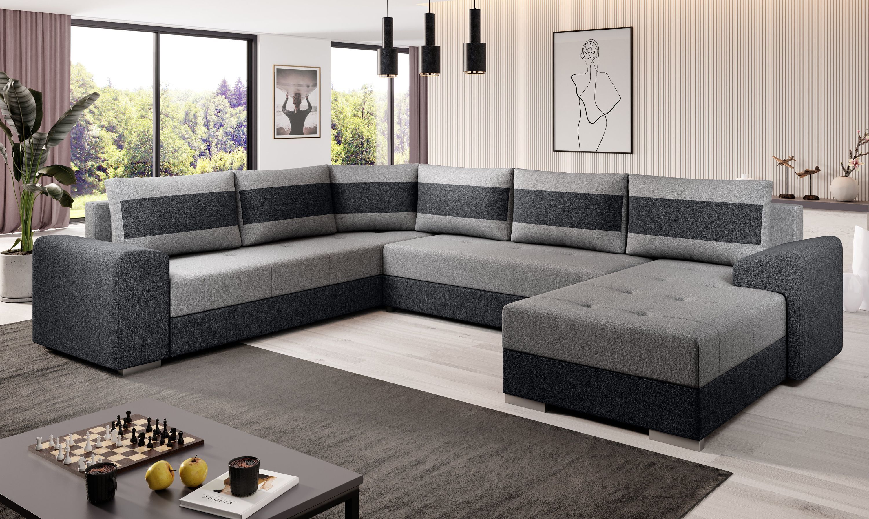 Sofa Couch Garnitur Sofagarnitur CHIEF U mit Schlaffunktion Wohnlandschaft NEU