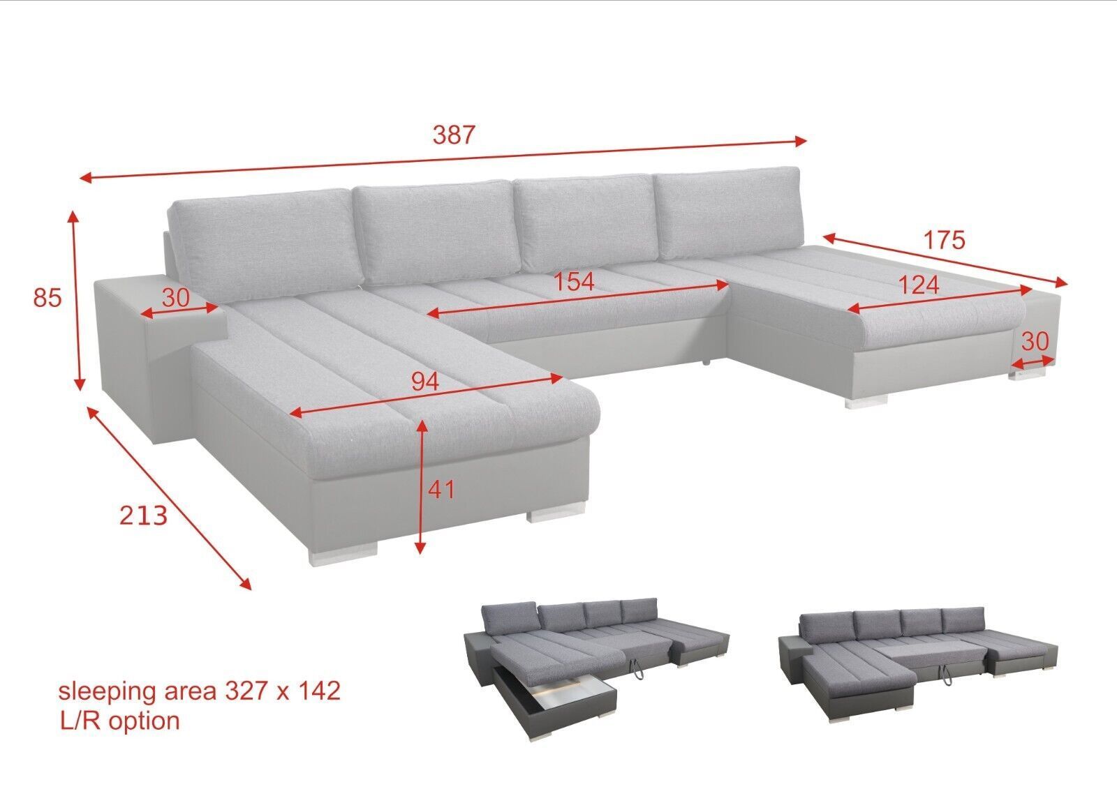 Sofa Couch Garnitur Sofagarnitur VERONA U mit Schlaffunktion Wohnlandschaft