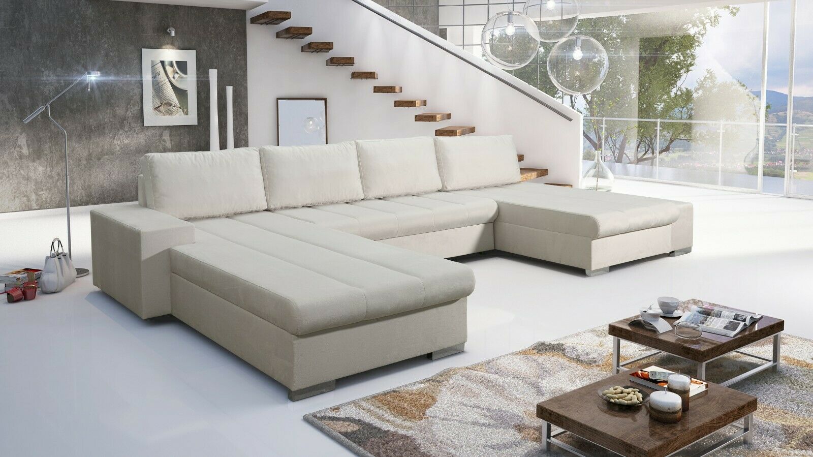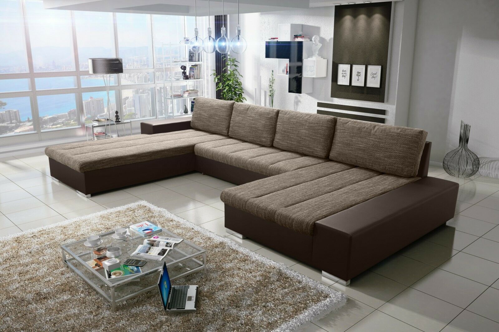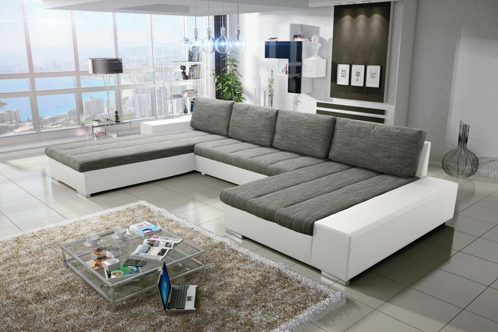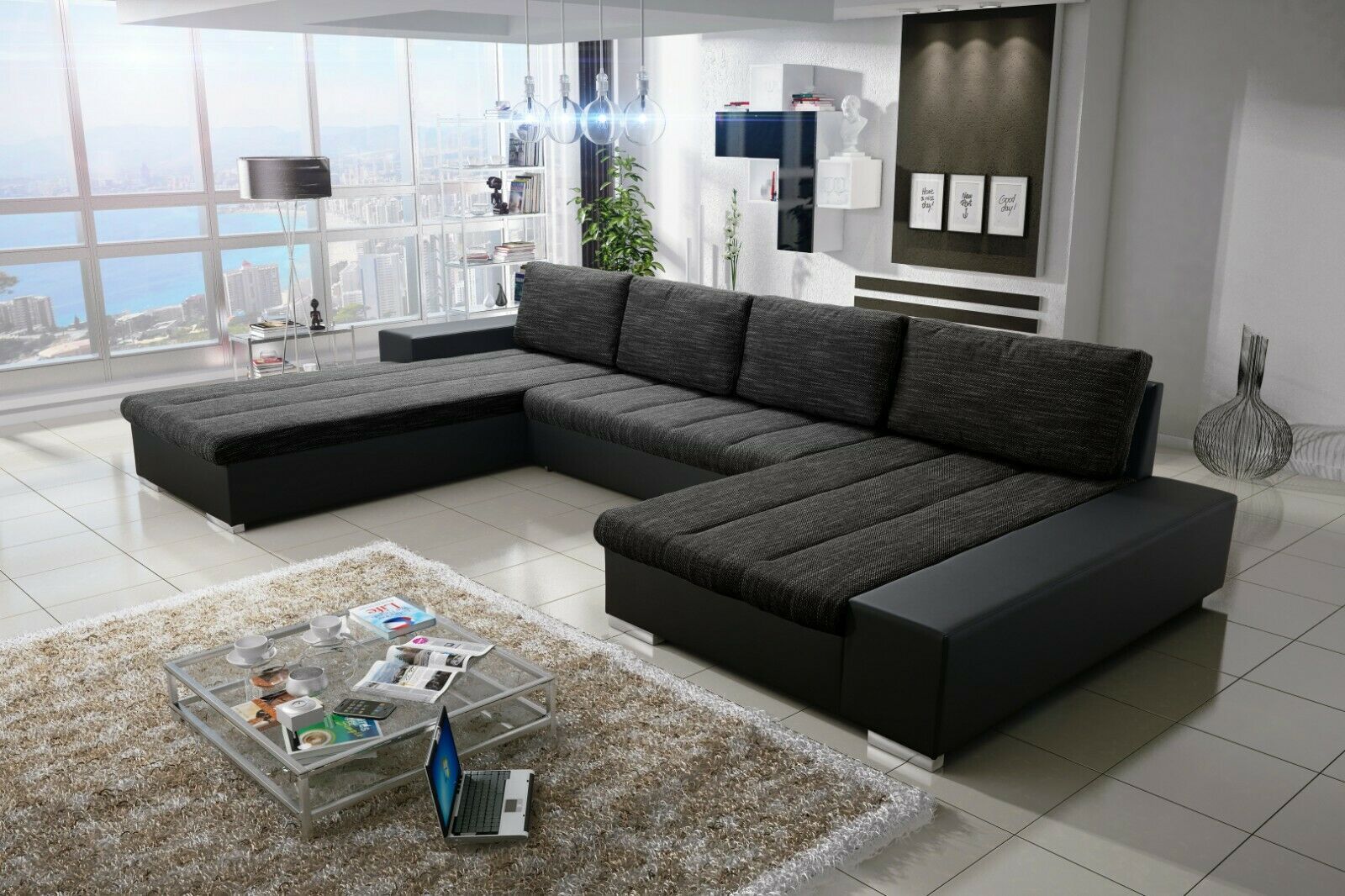 Sofa Couch Garnitur Sofagarnitur VERONA U mit Schlaffunktion Wohnlandschaft NEU