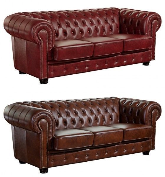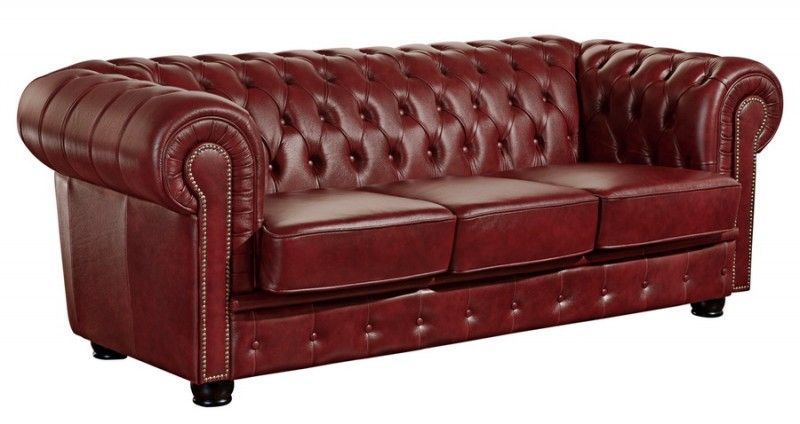 Max Winzer Sofa Couch Ledercouch 3-sitzig Leder Wischleder vintage rot braun Ziernieten