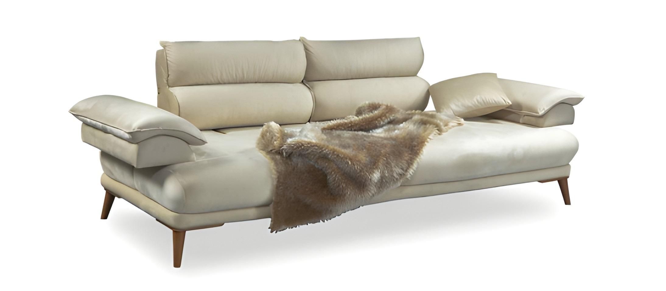 Sofa Couch Polstersofa Verstellbare Armlehnen Rückenlehne Beige 3 Sitzer