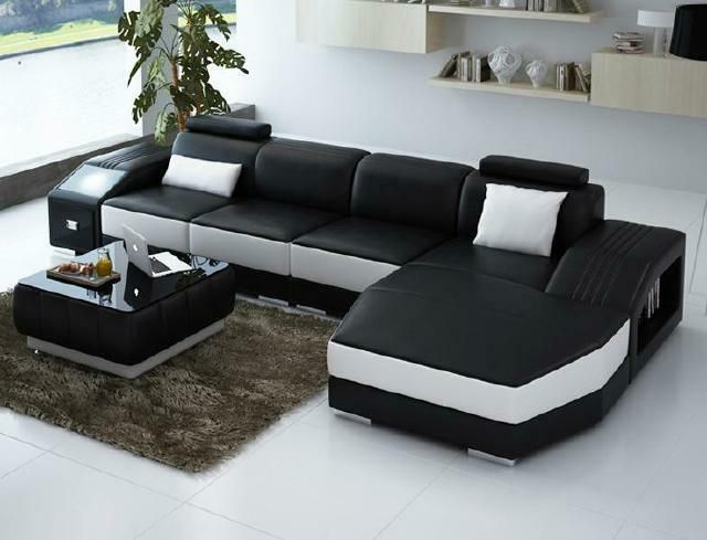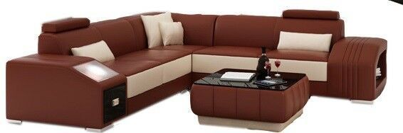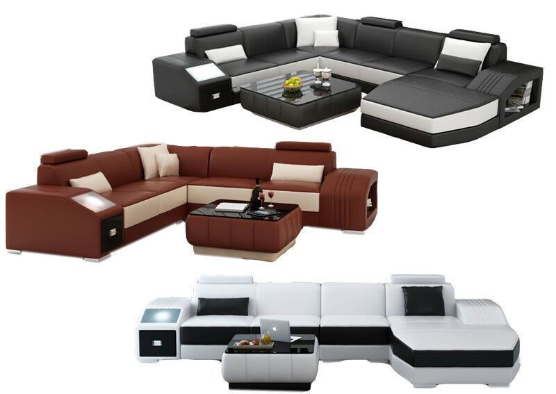 Sofa Couch Wohnlandschaft XXL Couch Ledersofa mit Ottomane Sofagarnitur 2724
