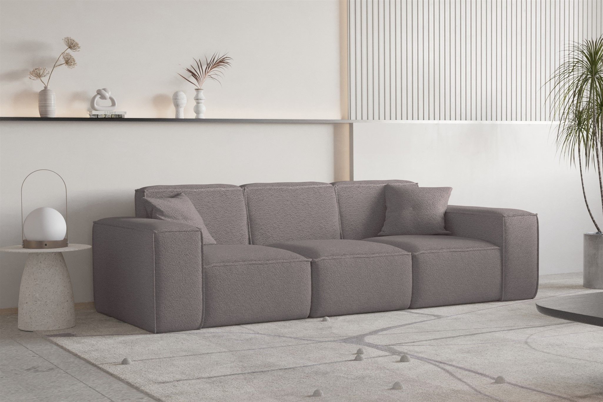 Sofa Designersofa CELES Premium 3-Sitzer in Stoff Ascot Bukla Taupe
