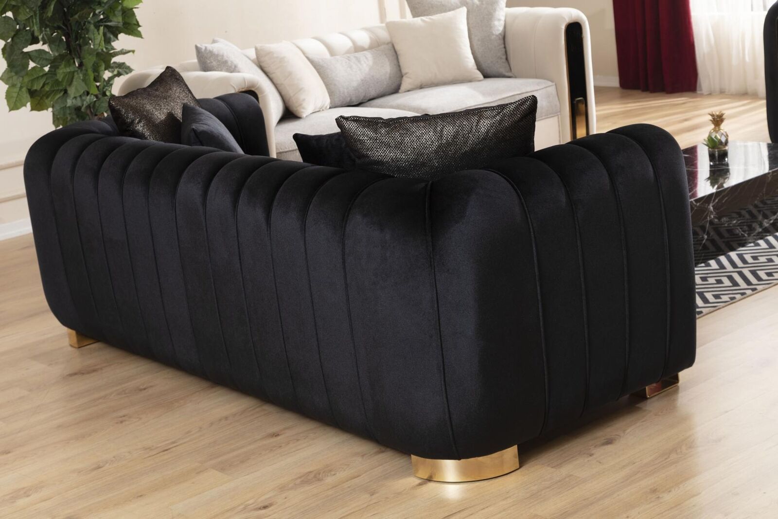 Sofa Dreisitzer Dreisitzer Modern Stoff Schwarz Sofas Design Wohnzimmer