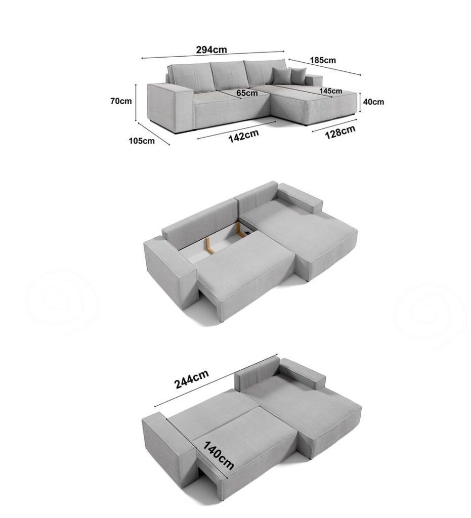 Sofa Ecksofa Couch COBO 294 cm Schlaffunktion mit Bettkasten Struktur Stoff