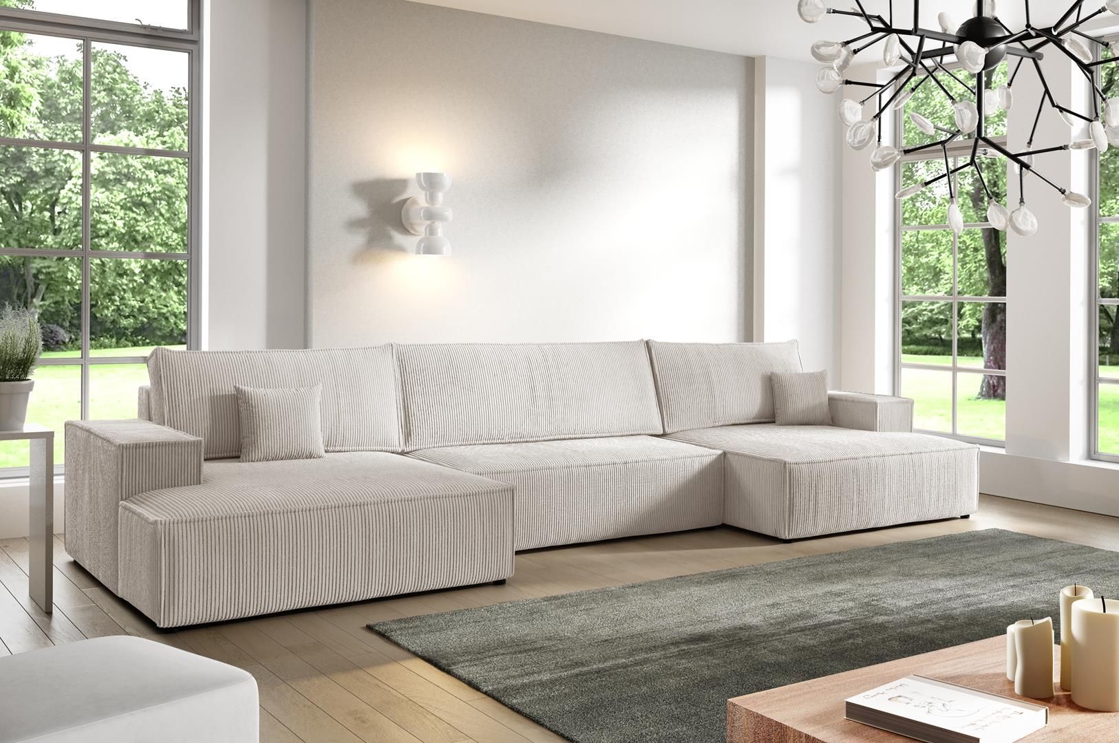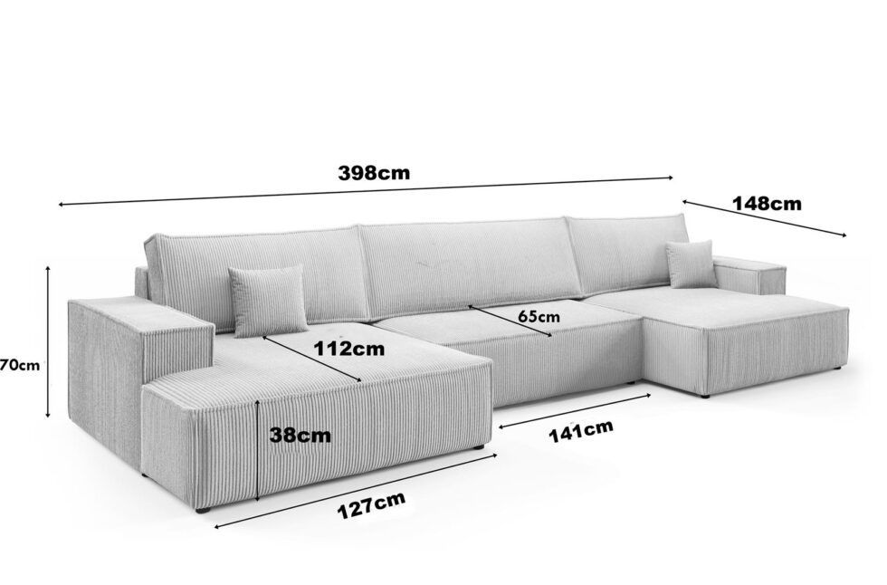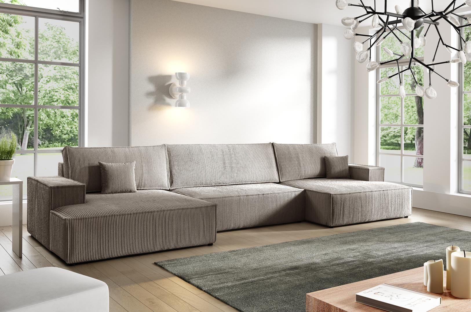 Sofa Ecksofa Couch COBO U 398 cm Cordstoff Schlaffunktion mit Bettkasten POSO