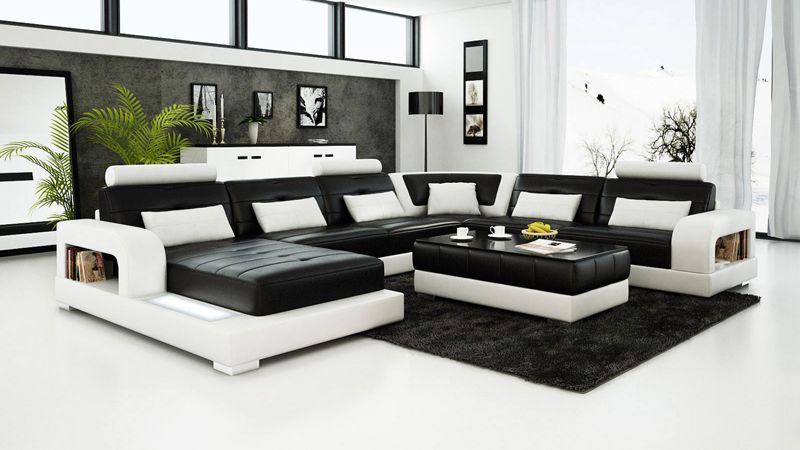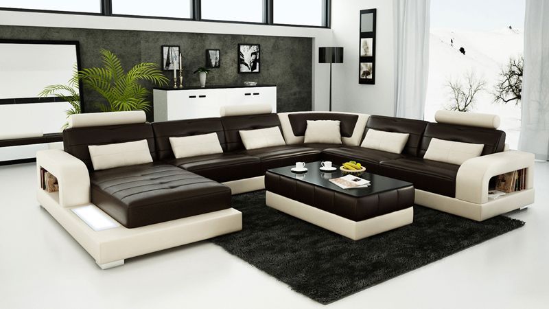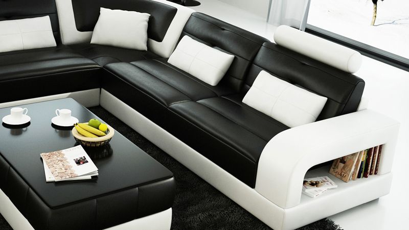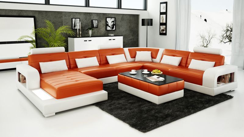 Sofa Ecksofa Design Wohnlandschaft mit Regal Polster Sitz Garnitur Ledersofa USB