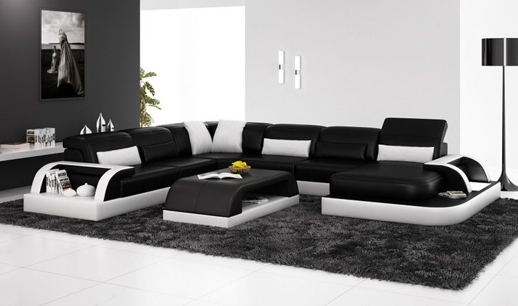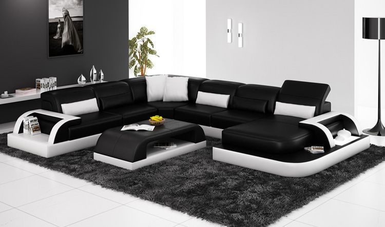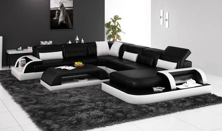 Sofa Ecksofa Design Wohnlandschaft Schwarz Polster Sitz Garnitur Ledersofa USB
