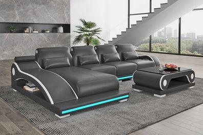 Ledersofa Couch Wohnlandschaft Garnitur Design Modern Sofa U-Form Sofa mit USB