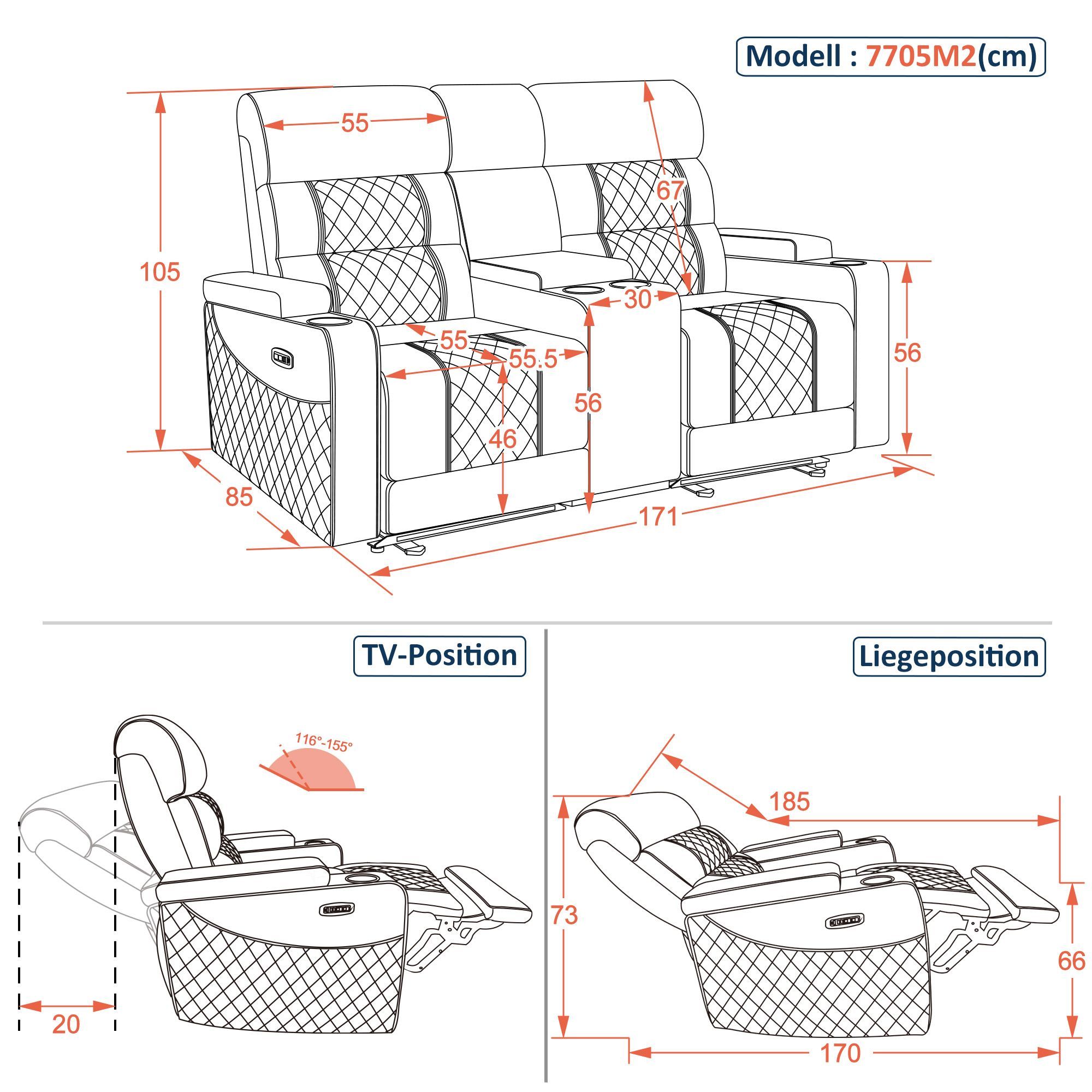 Sofa M MCombo 1-Sitzer/2-Sitzer Sofa mit verstellbaren Kopfstützen
