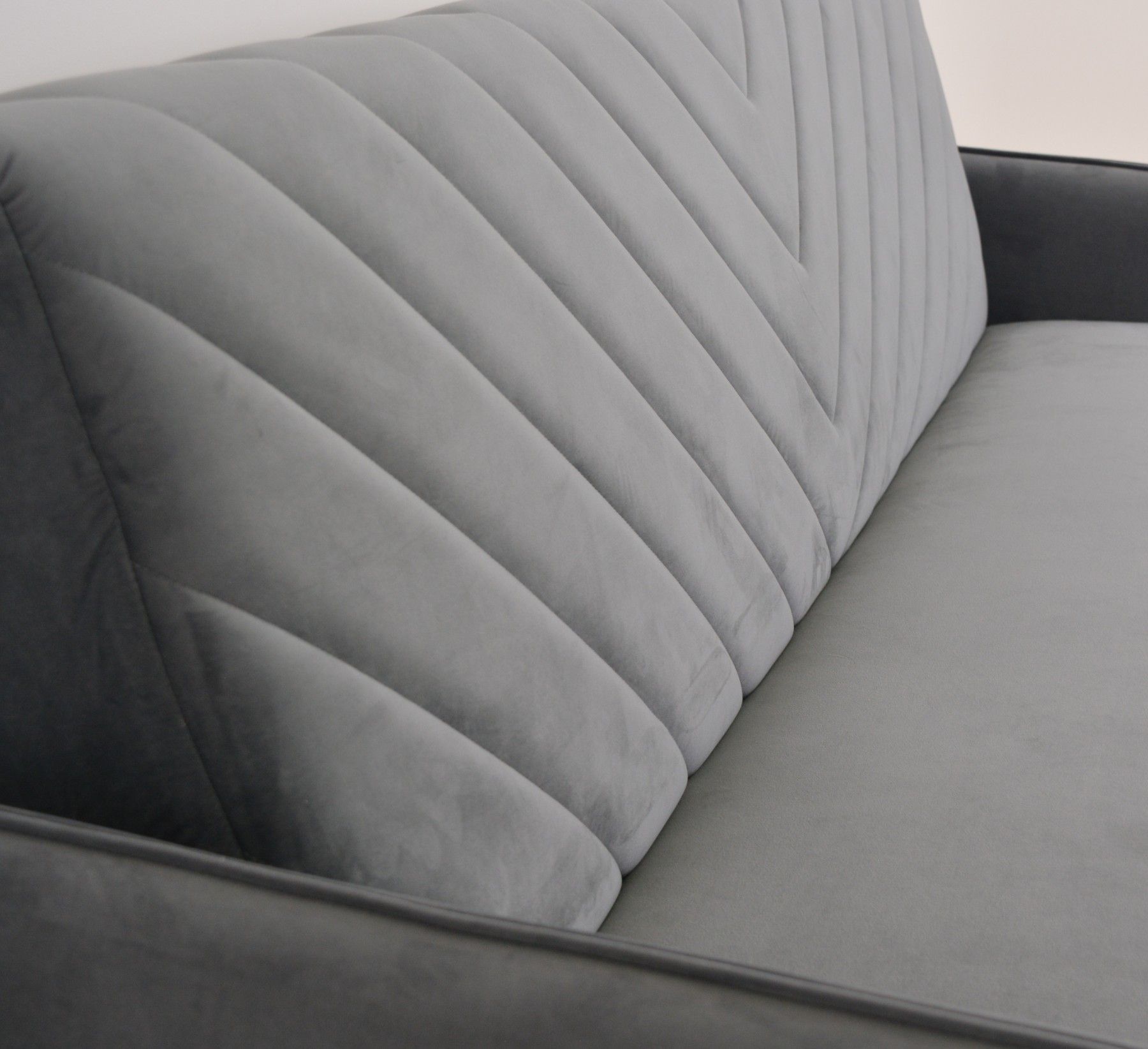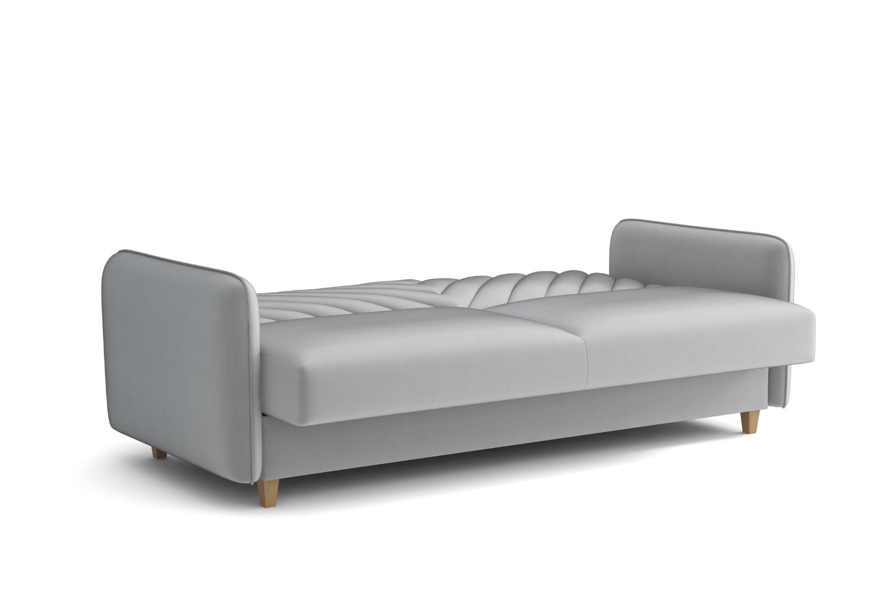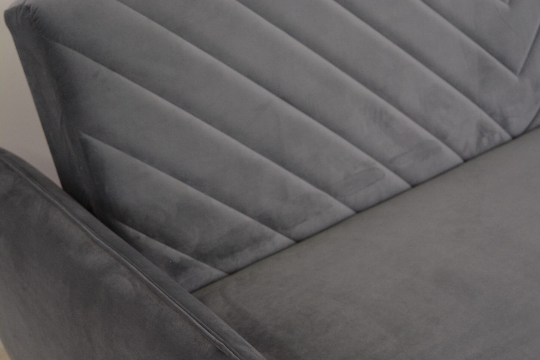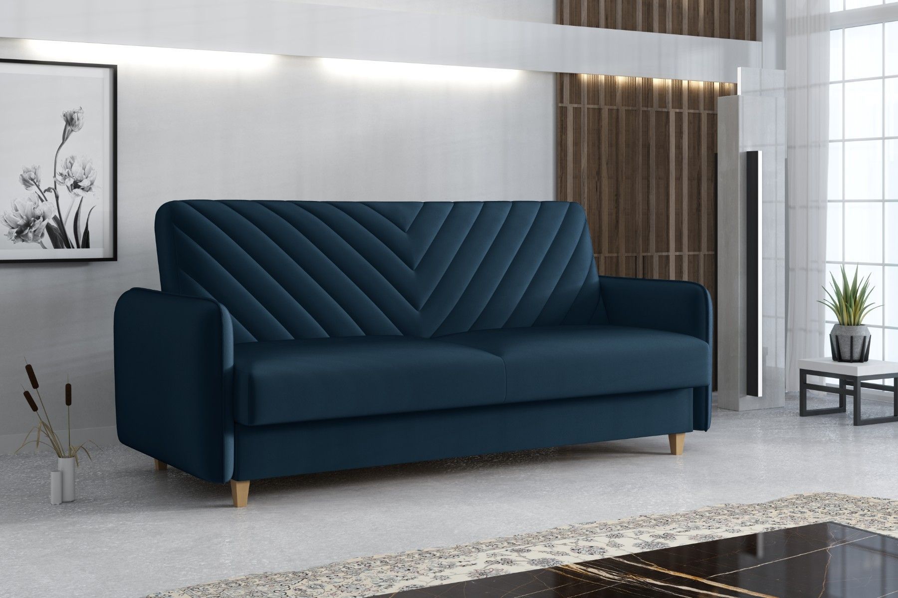 Schlafsofa Modeno 210x97x90 cm Dieses stilvolle Sofa bietet nicht nur ein ansprechendes Design, sondern auch hohen Komfort. Die vertikal gesteppten Polster sorgen für eine moderne Ästhetik, während die gepolsterten Armlehnen zusätzliche Gemütlichkeit bieten. Ideal für jeden Wohnraum, lässt sich das