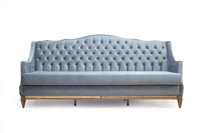 Klassische Sofa 3 Sitz Design Wohnzimmer Polster Holz Polster Moderne Luxus Blau