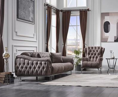 Deluxe Wohnzimmer Garnitur Sofa und Sessel Premium Sofa und sessel Neu Braun