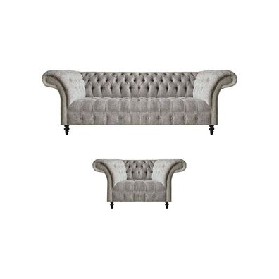 Sitzmöbel Grau Sofa Komplett Sofa Couch Dreisitze Luxus Sessel Chesterfield