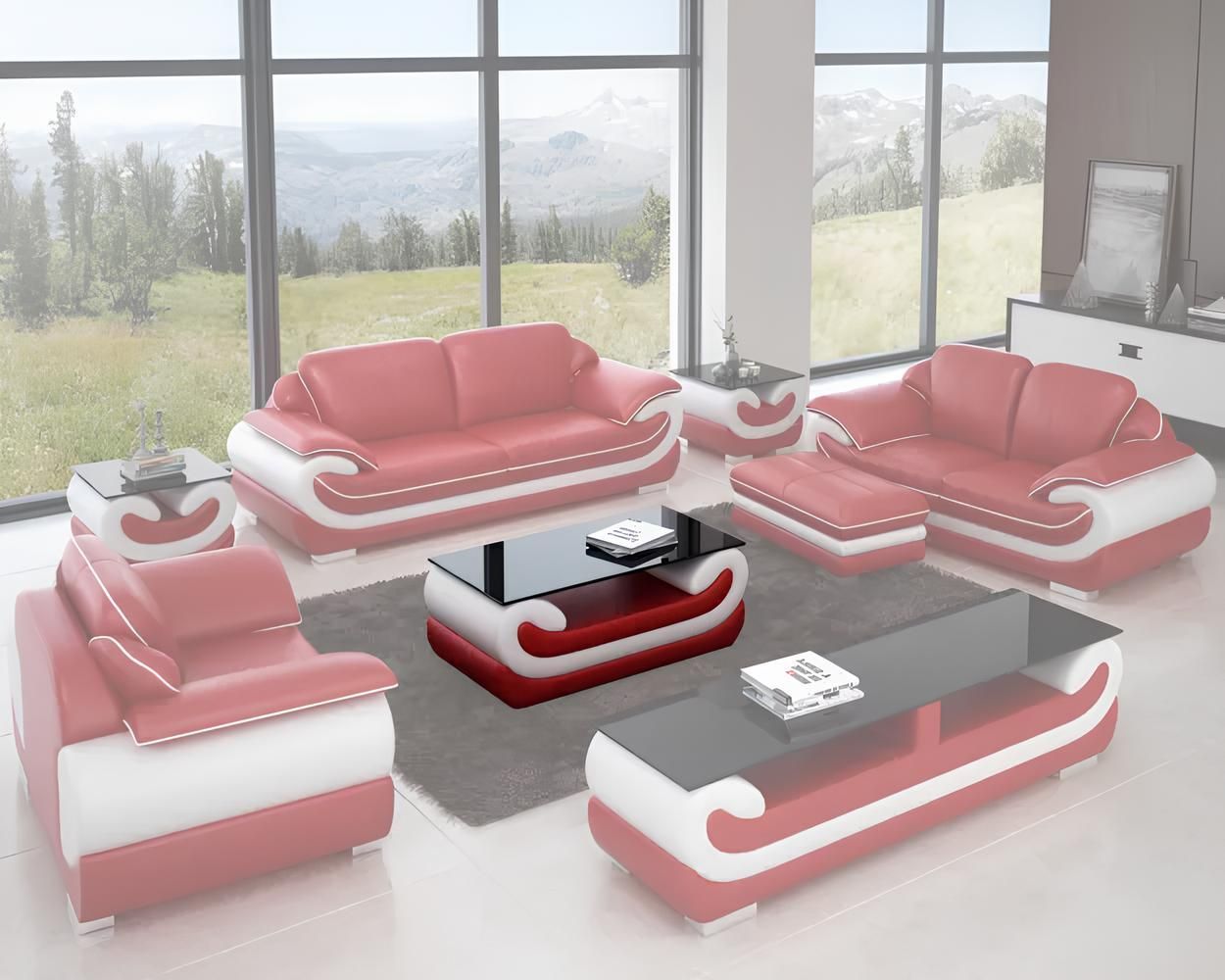 Sofas Sofagarnituren 3-Sitzer 2-Sitzer Orange Textil Set Leder Edelstahl