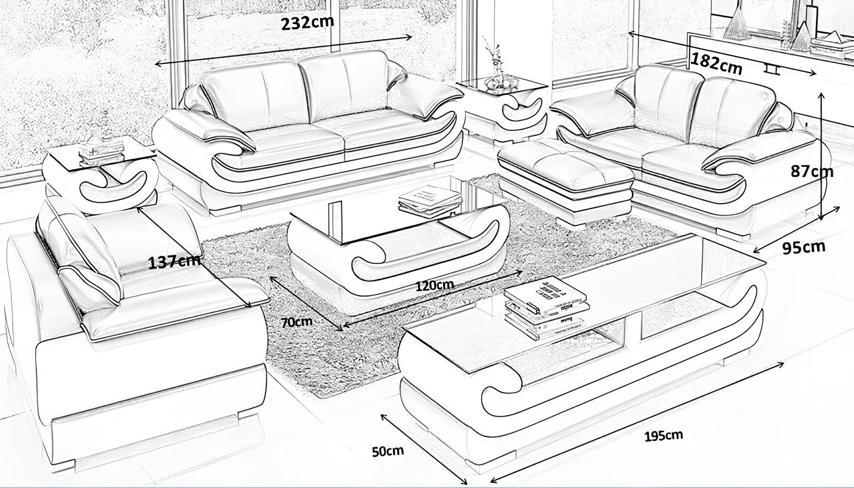 Luxus Set Modern rtv Wohnzimmer Polster Sitz Sofagarnitur 3 + 3 Sitz Couchtisch