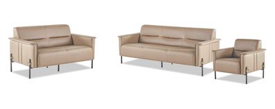 Sitzmöbel Beige Sofagarnitur Set 3-Sitzer 2-Sitzer Sessel Leder Modern