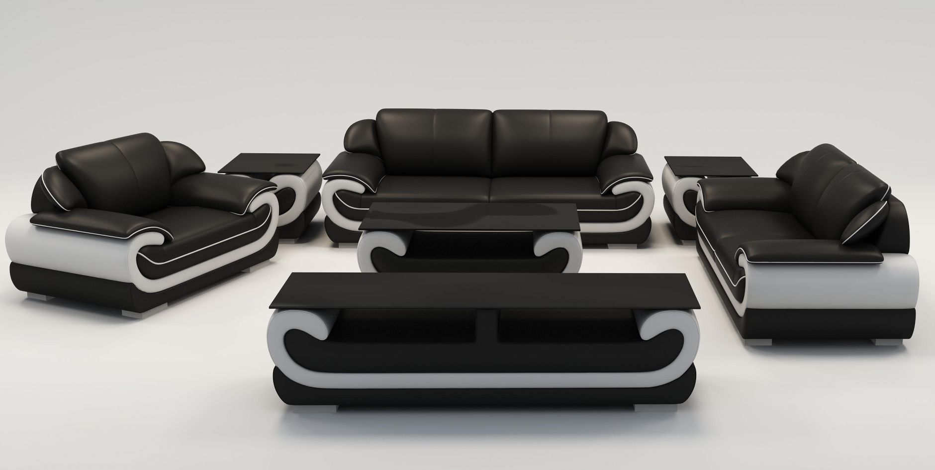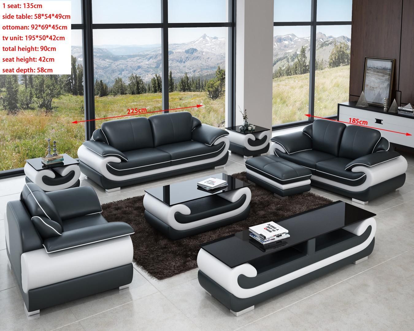Sofa Set 3 + 2 + 1 Seater + Stool Upholstered Couches Designer Black Plus White