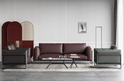 Ledersofa Sofagarnitur Komplette Garnitur Wohnzimmer Möbel Set Polster Couchen