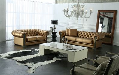 Klassische Chesterfield Sofagarnitur Komplett Set Garnitur Sofa Polster Leder