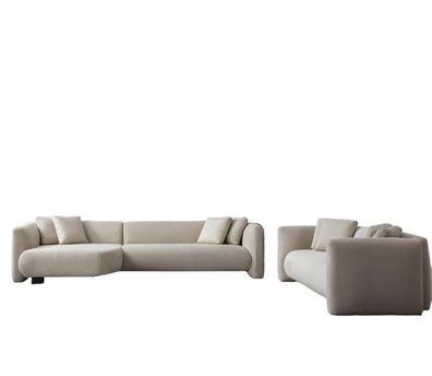Designer Beiges Wohnzimmer Set Polster Eckcouch Designer 3-Sitzer 2tlg