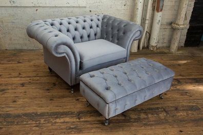 Set Garnitur Polster Relax Fernseh Sessel Hocker Beistell Designer Chesterfield
