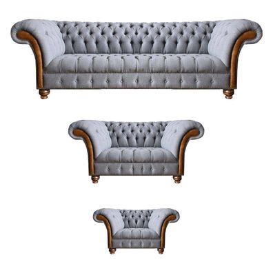 Chesterfield Hellgraue Polster Sofagarnitur Textil Designer 3tlg Set