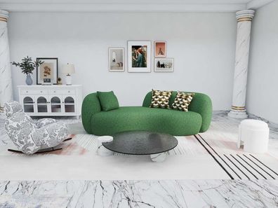 Weiß-Grünes Polster-Set Designer 3-Sitzer Fußhocker Schaukelstuhl