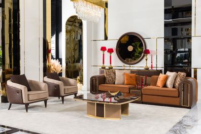 Modernes Wohnzimmer Polster-Set Designer 3-Sitzer Sessel Holztisch