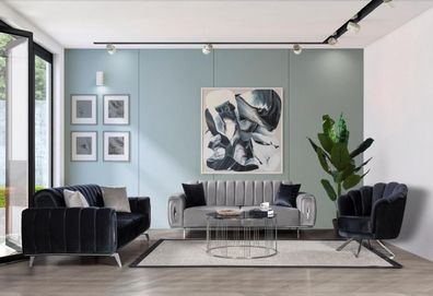 Schwarz-Graue Edelstahlsofas Designer Polster Dreisitzer Sessel 3tlg Set