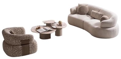 Exklusives Wohnzimmer Polster-Set Designer Sofa Textilsessel Tisch