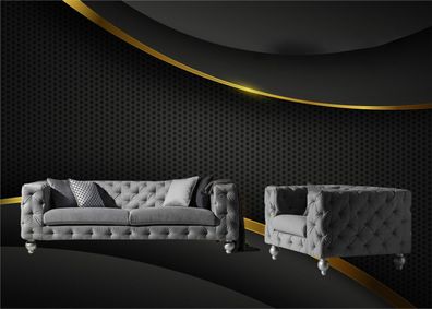 Chesterfield Sofa Set 3 + 2 Sitzer Samt Velour Garnitur Design Farbwahl Garnituren