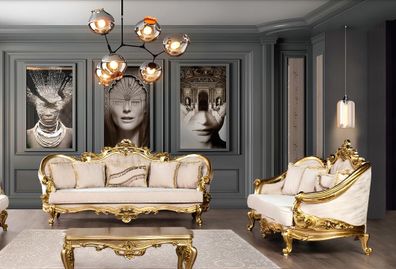 Luxus Sofagarnitur 3 + 3 Sitzer Sessel Sofas Set Stoff Barock Sitz Gruppe Garnitur