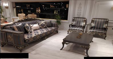 Garnitur Sofagarnitur 3 + 1 + 1 Sitzer Couchtisch Sessel Sofas Set Stoff Barock Sitz