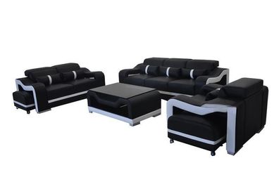 Ledersofa Sofagarnitur 3 + 1 Couch Sitz Polster Sofa 3-Sitzer Garnitur Set