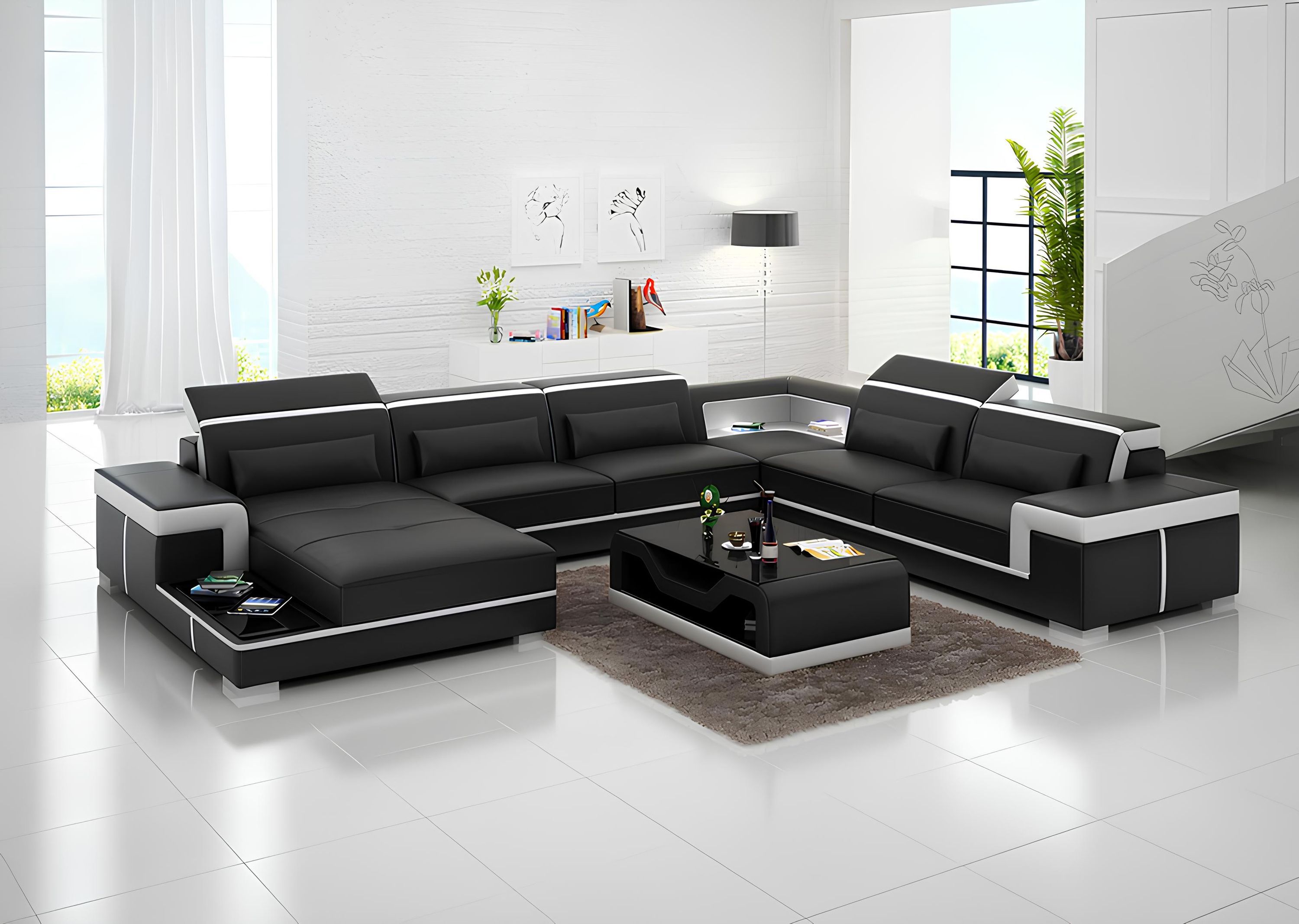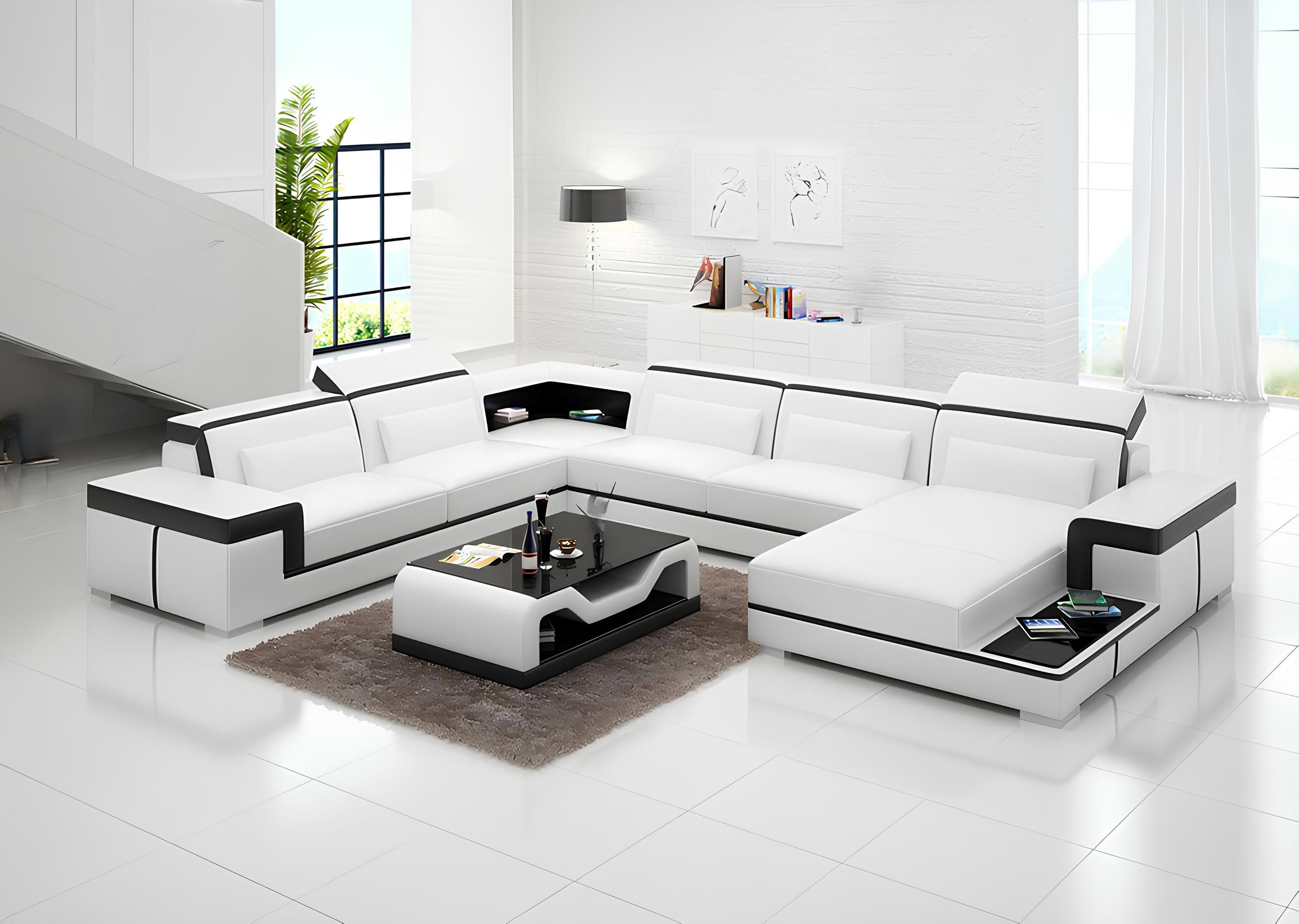 Wohnlandschaft Garnitur Design Modern Sofa Ecksofa Sofa U-Form Ledersofa Couch