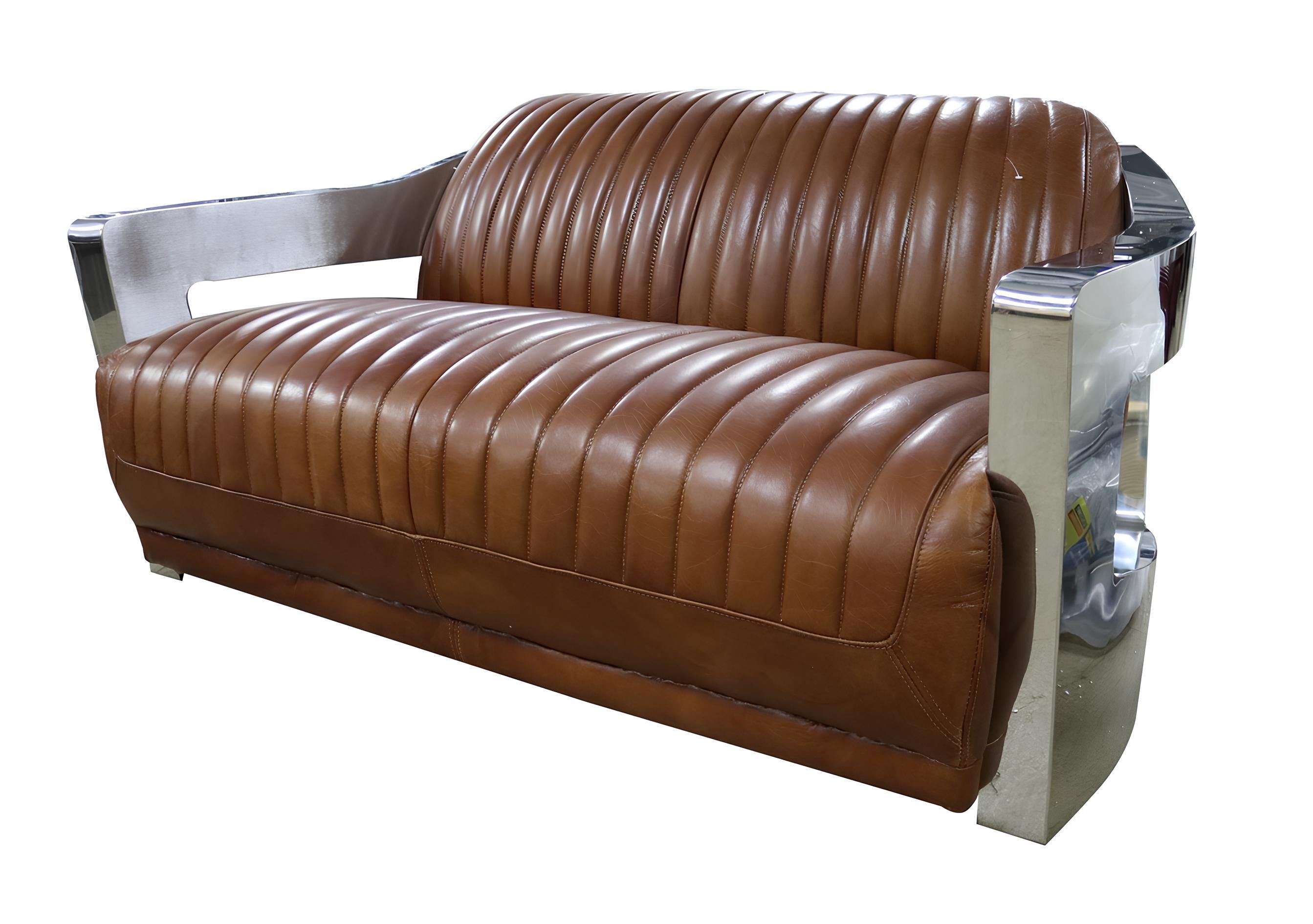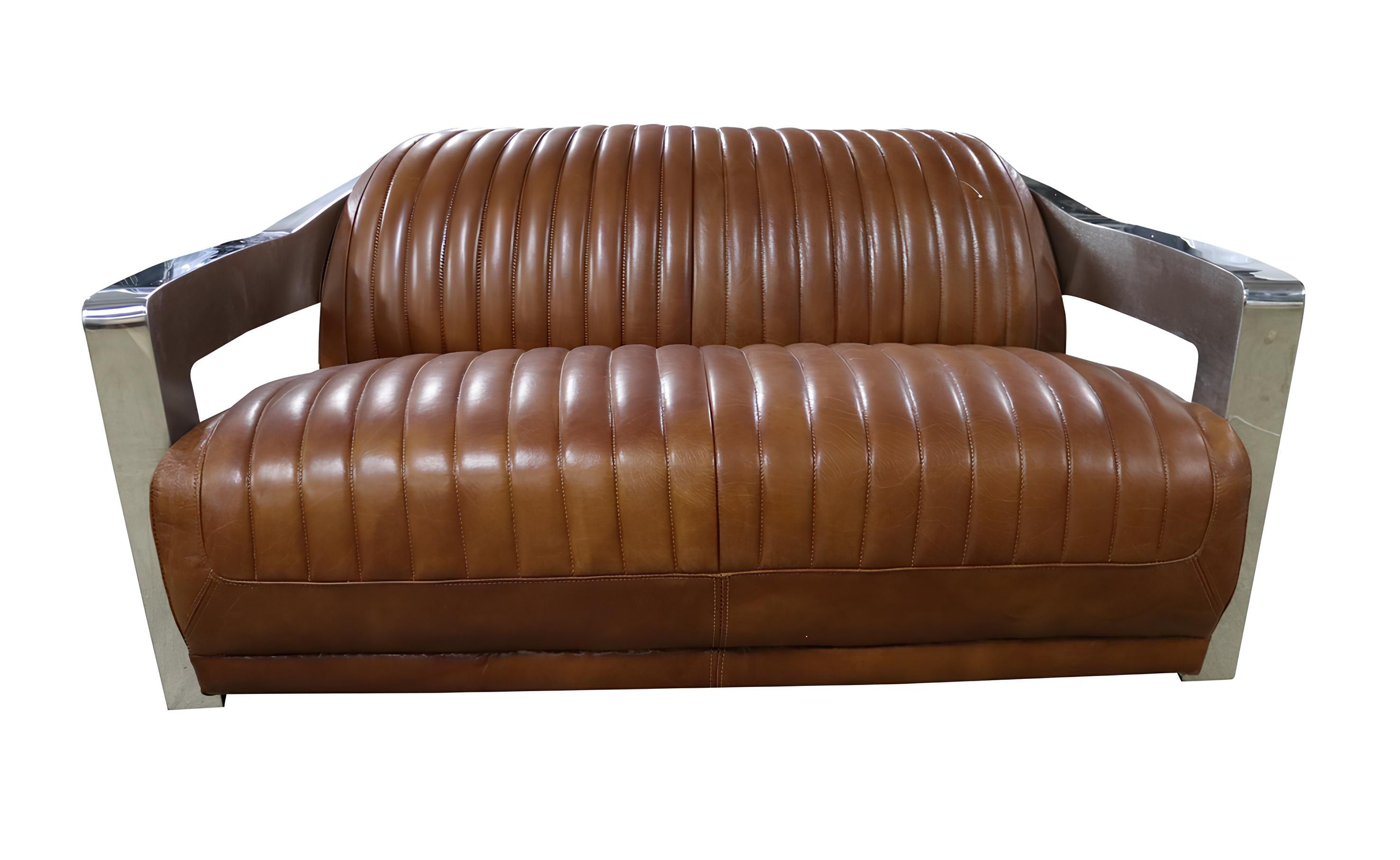 Sofa Vintage 2-Sitzer Ledersofa im Retro Stil Echtleder Aluminium Nieten Möbel