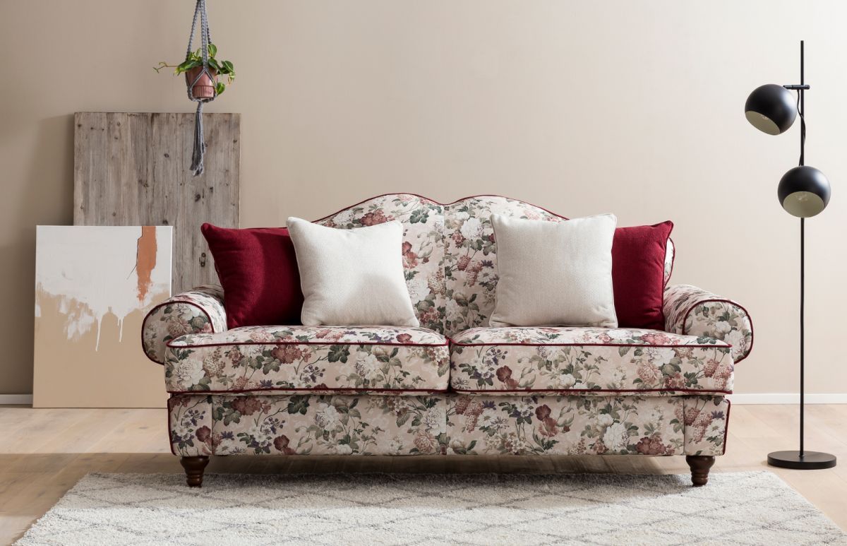 Sofa Wohnzimmer Couch 3-Sitzer in Blumen Design Landhaus Einzelsofa Elita 200 cm