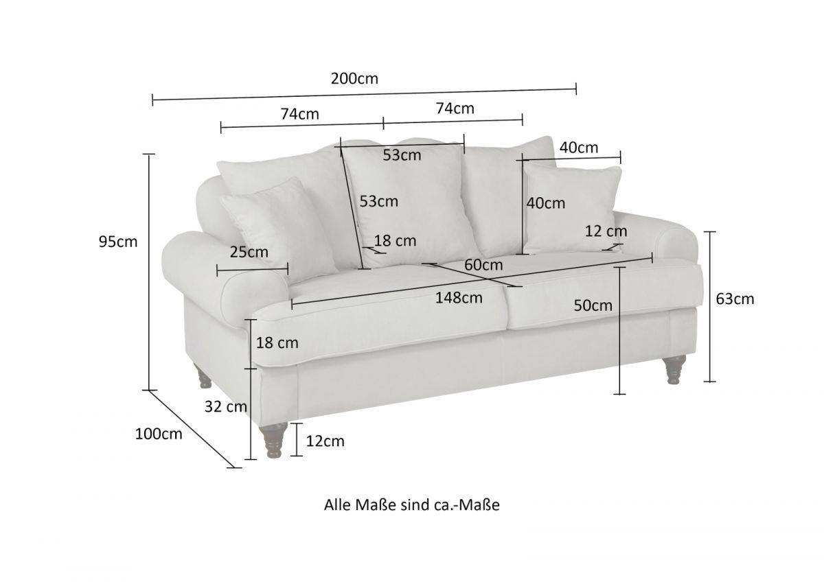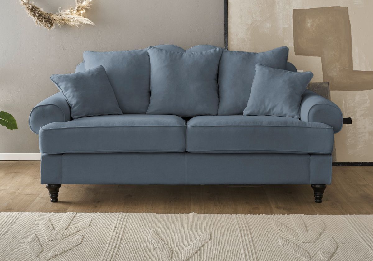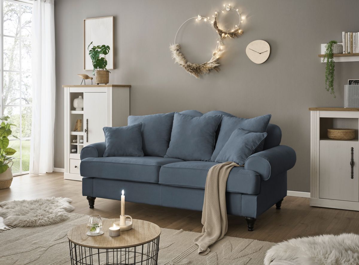 Sofa Wohnzimmer Couch 3-Sitzer Landhaus Einzelsofa in blau Adelina 200 cm