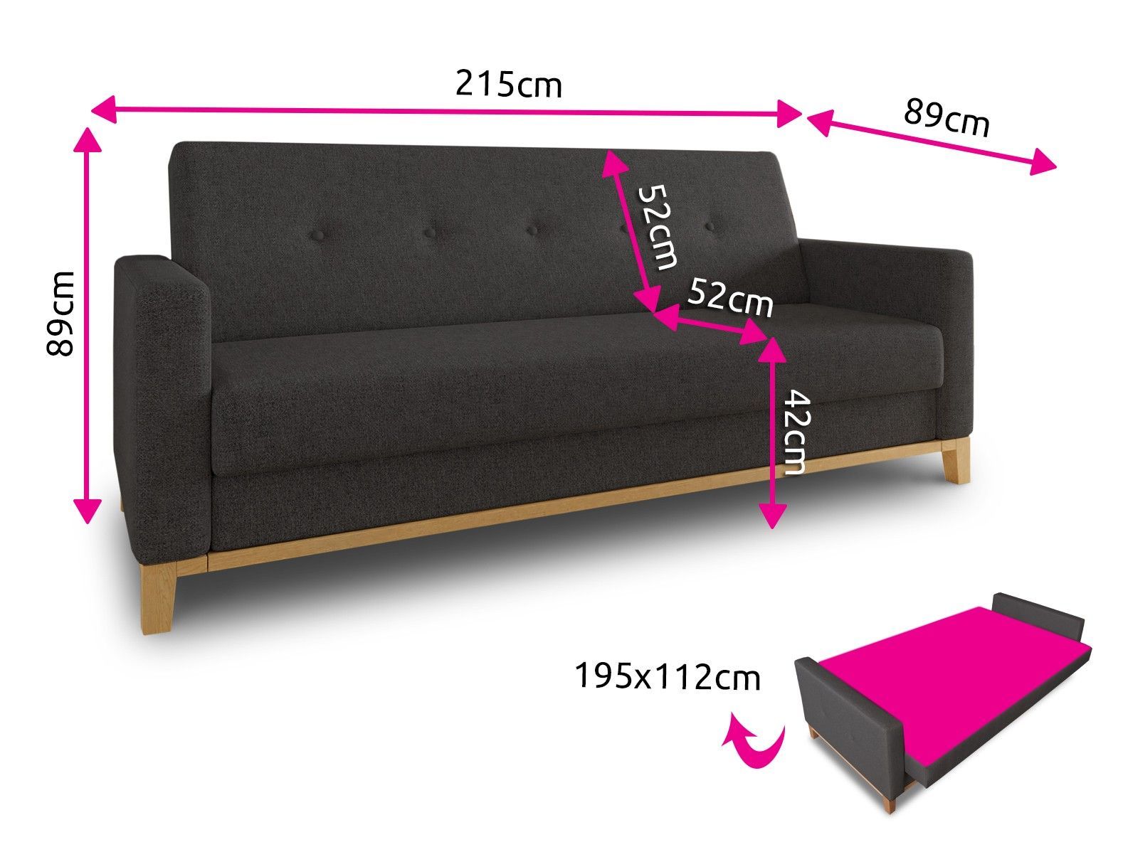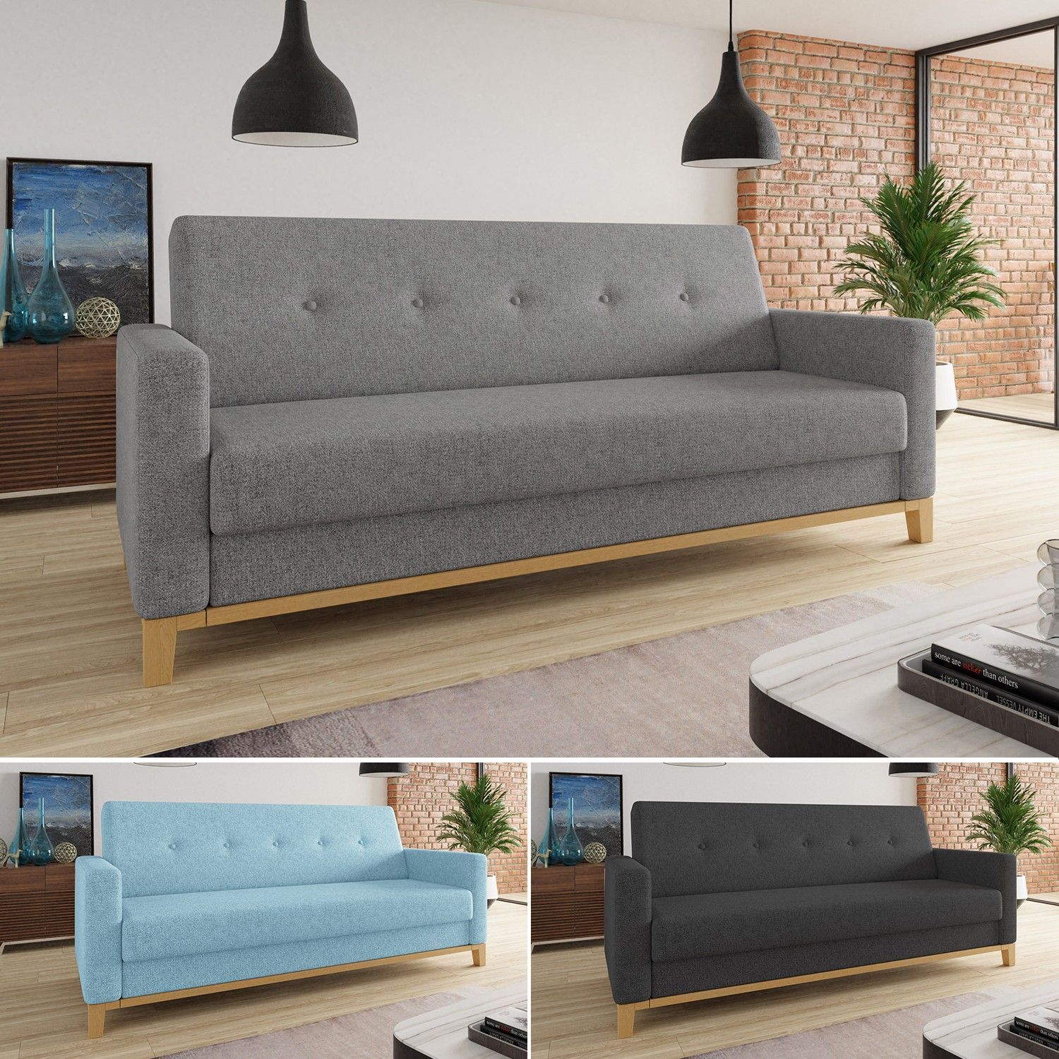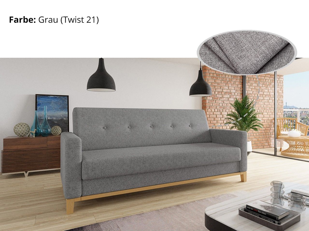 Sofnet Sofa Wood mit Schlaffunktion - Schlafsofa mit Bettkasten, Bettsofa, Massivholz, Couch