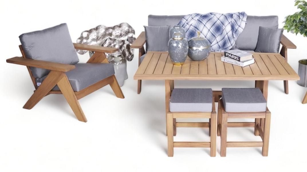 Sofagarnitur 3 + 1 Sitzer X Hocker Sitzgruppen Holz Esstisch Gartenmöbel Set 5Tlg
