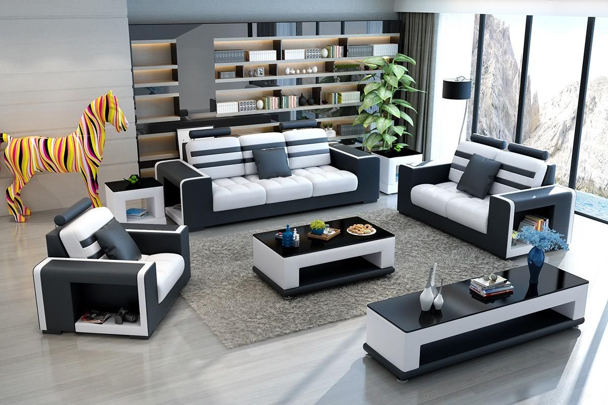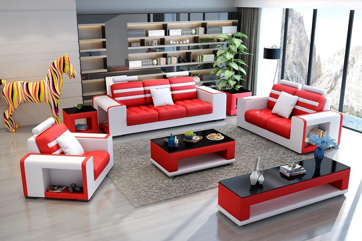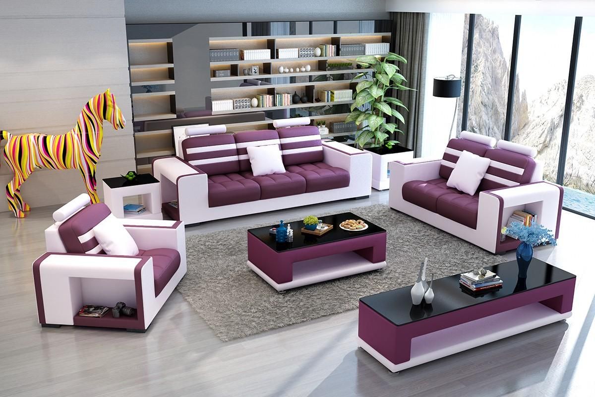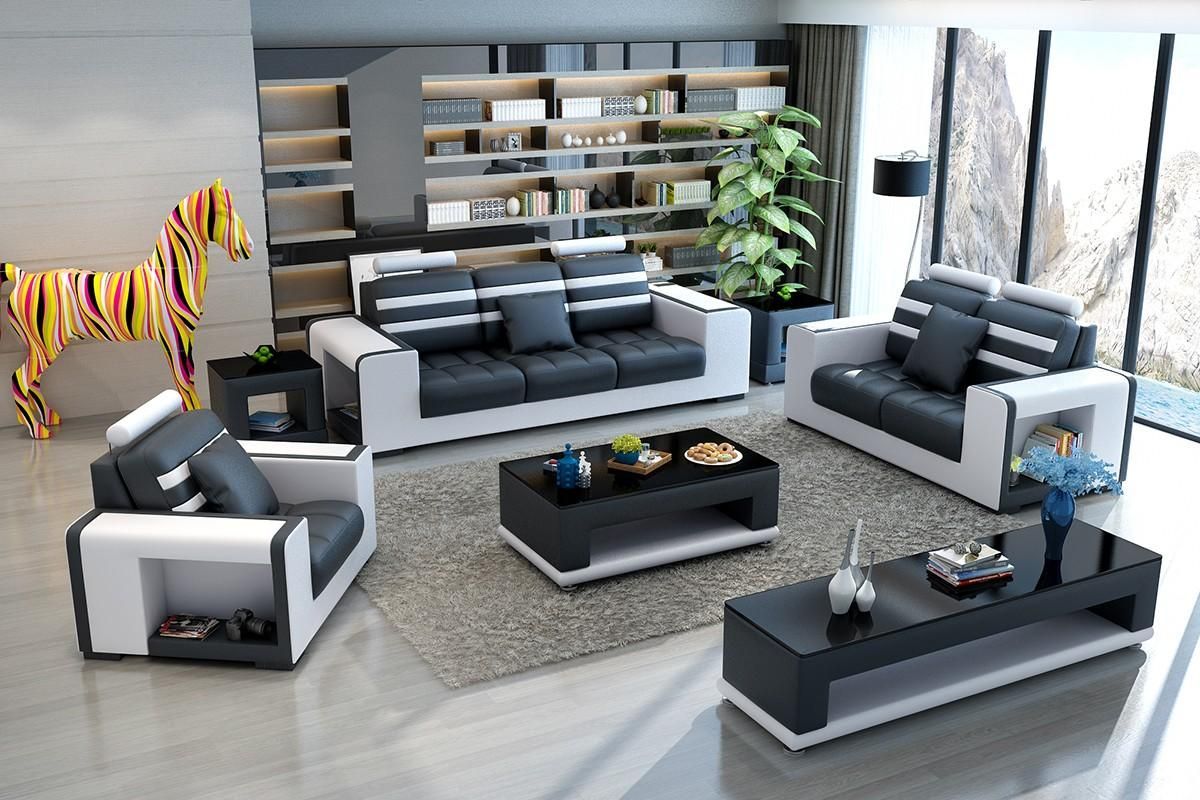 Sofagarnitur 3 + 2 + 1 Sitzer Wohnlandschaft Sofa Couch Polster Garnitur Sofas Leder