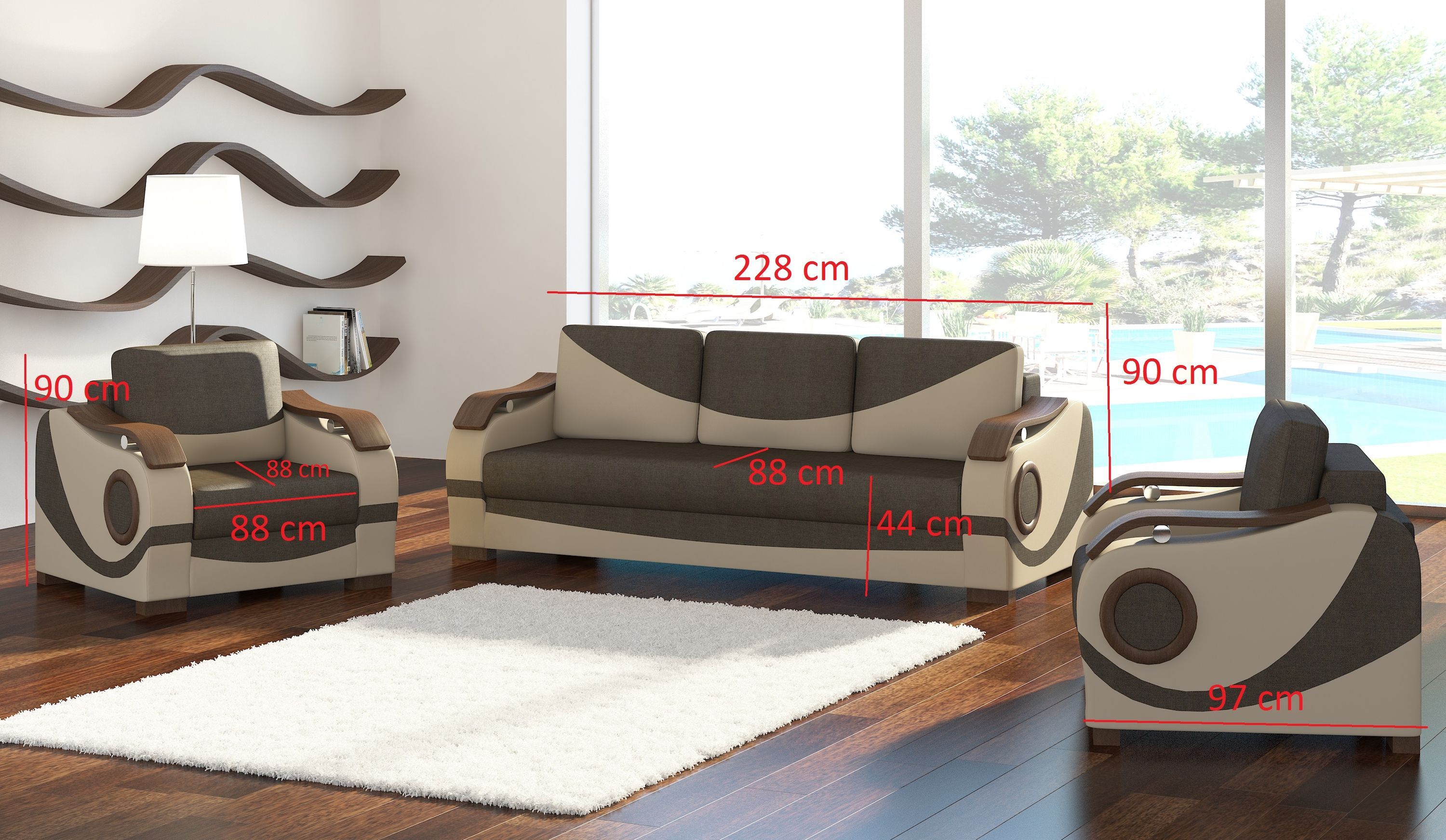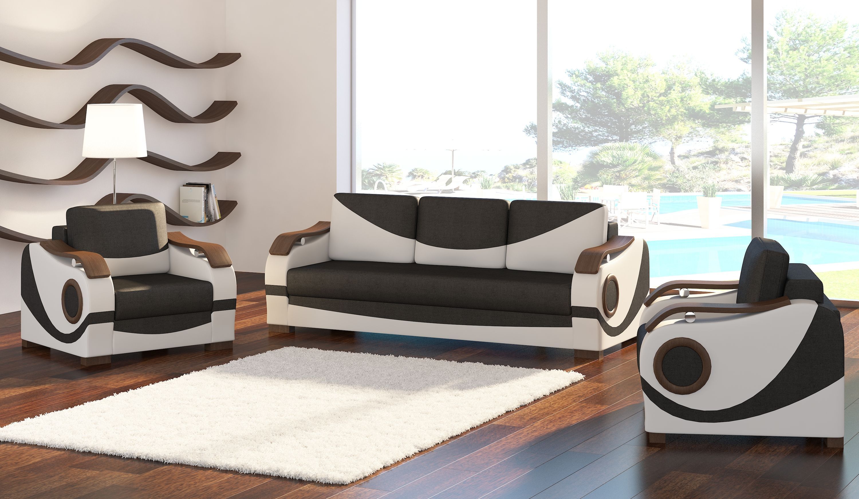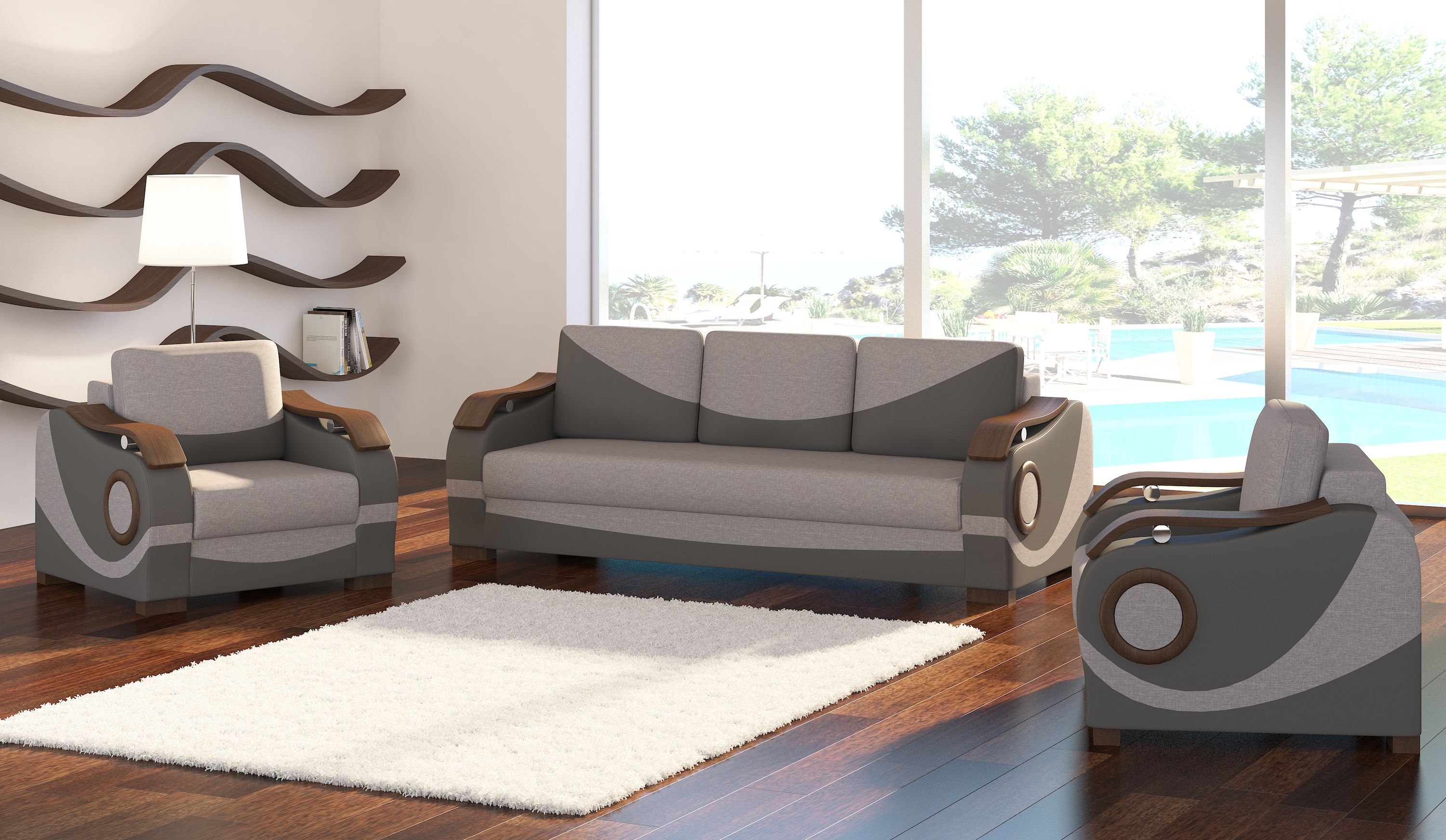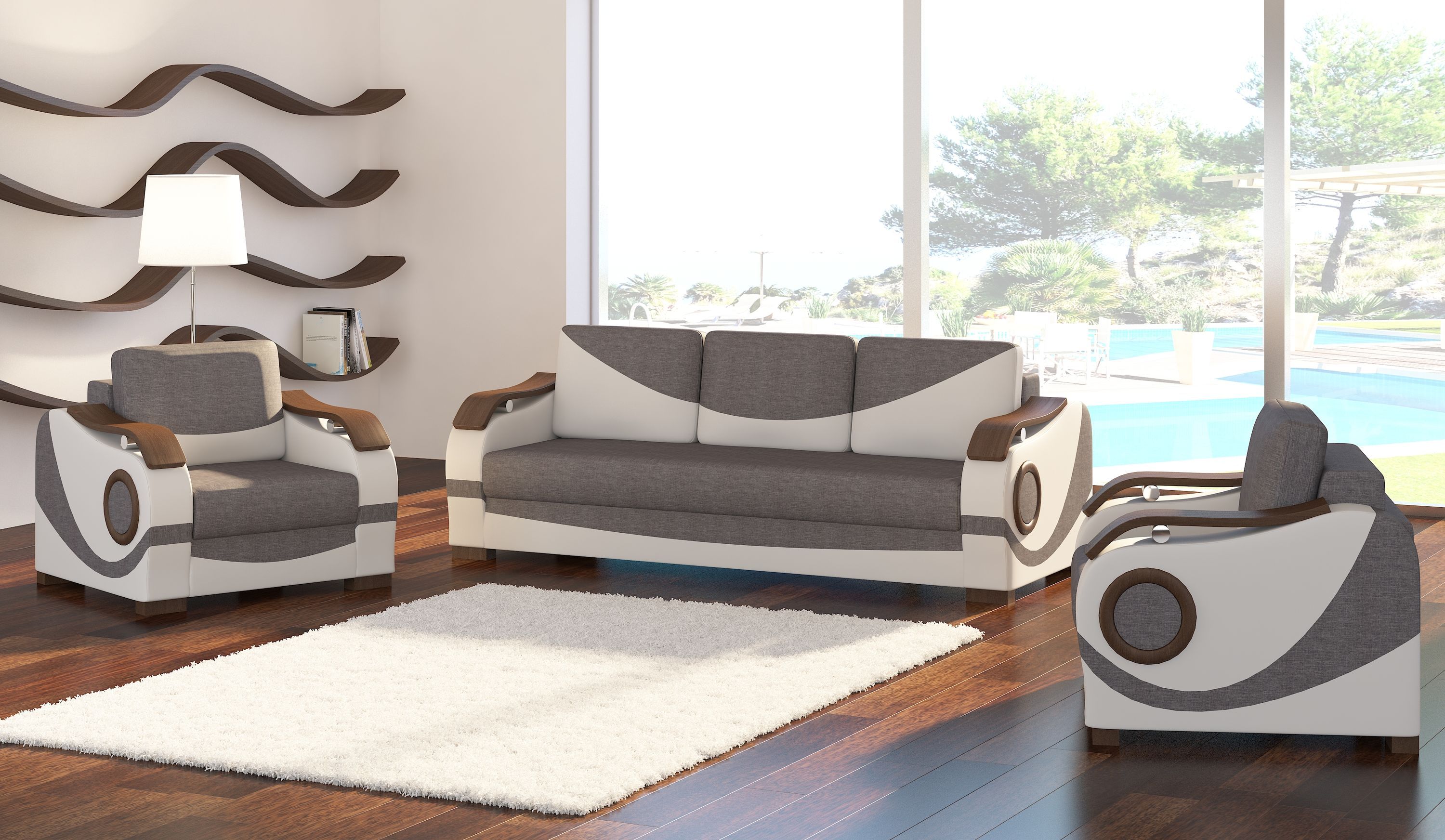 Sofagarnitur Puerto 3 + 1 + 1 mit Bettfunktion Set Couch Polster Sofas Sofa Couchen