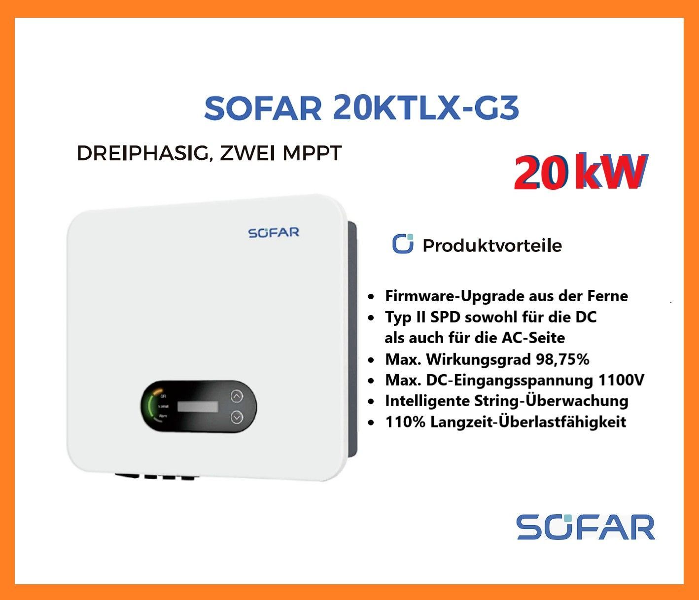 Sofar Solar 20KTLX-G3 - 3PH - Wechselrichter 3-phasig Photovoltaik 20 kW WiFi