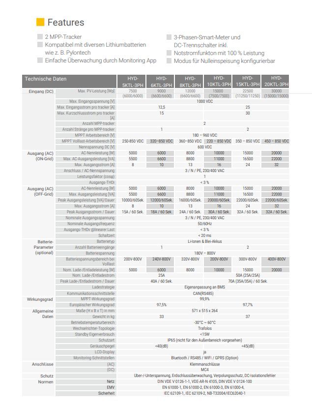 Sofar Solar 3-Phasen Hybrid Solarwechselrichter HYD 6KTL-3PH