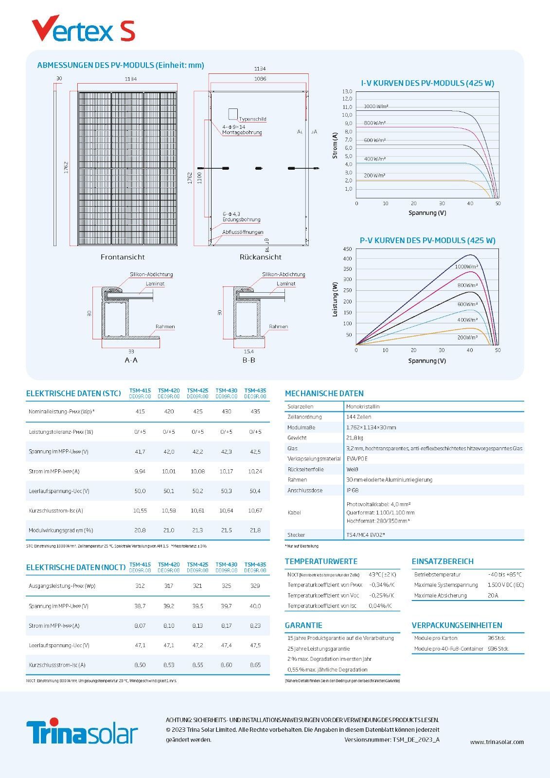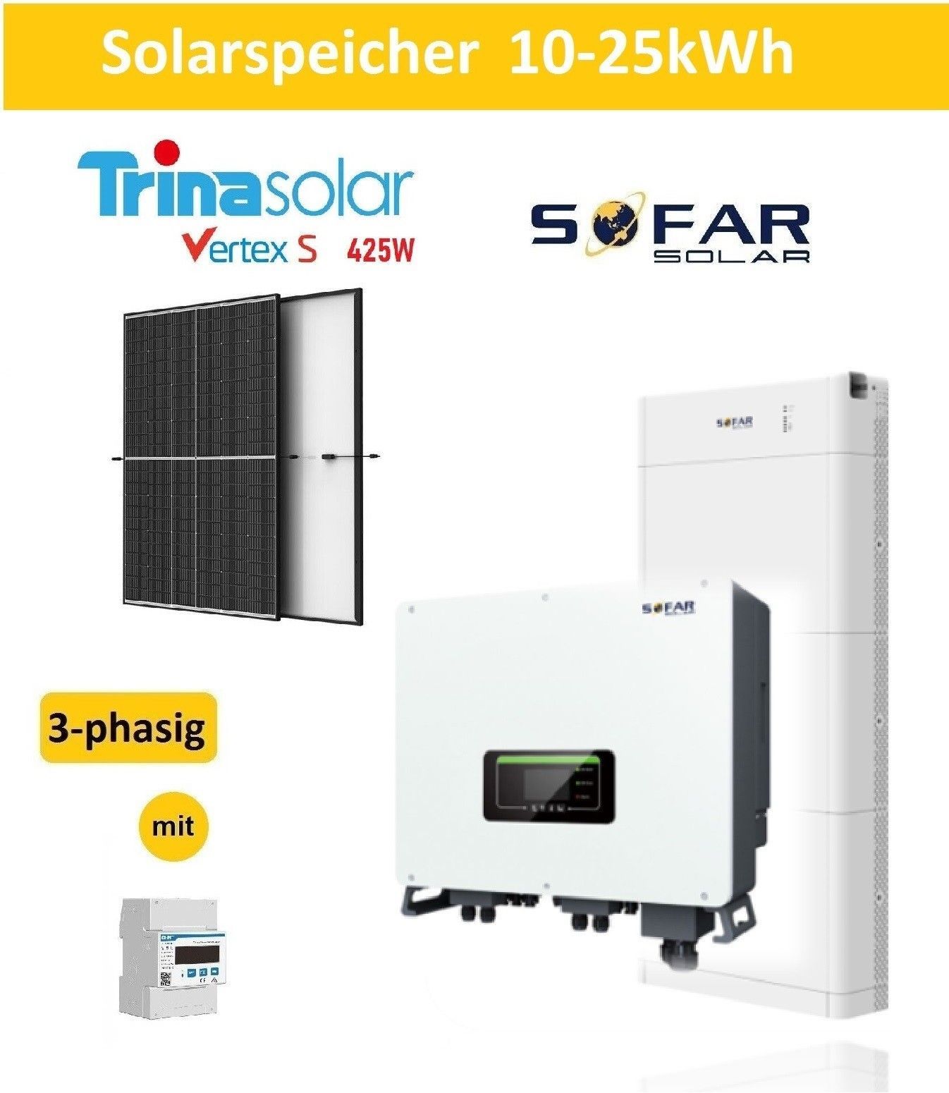 SOFAR HYD15-20KTL-3PH Hybrid Wechselrichter + Smartmeter + Energiespeicher SOFARSOLAR BTS 5K 10-20kWH + 36 x Trina Vertex S 425W Artikelbeschreibung Sofar Solar Batteriespeicher BTS 5K 5kWh mit BTS 5K-BDU Artikeldetails Nennspannung: 400 V DC Nennkapazität: 5000 Wh nutzbare Kapazität: 5000 Wh Nennla
