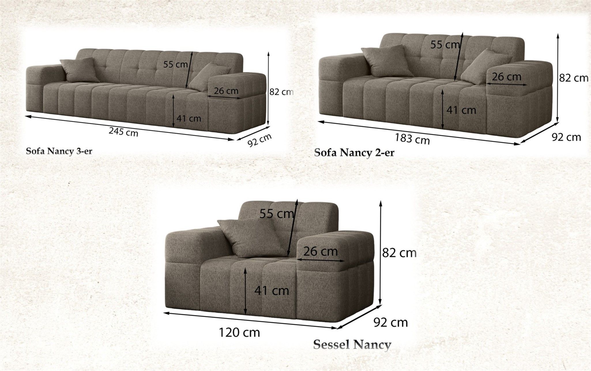 Sofaset Designersofa NANCY 3-2-1 in Stoff Neve Tannengrün