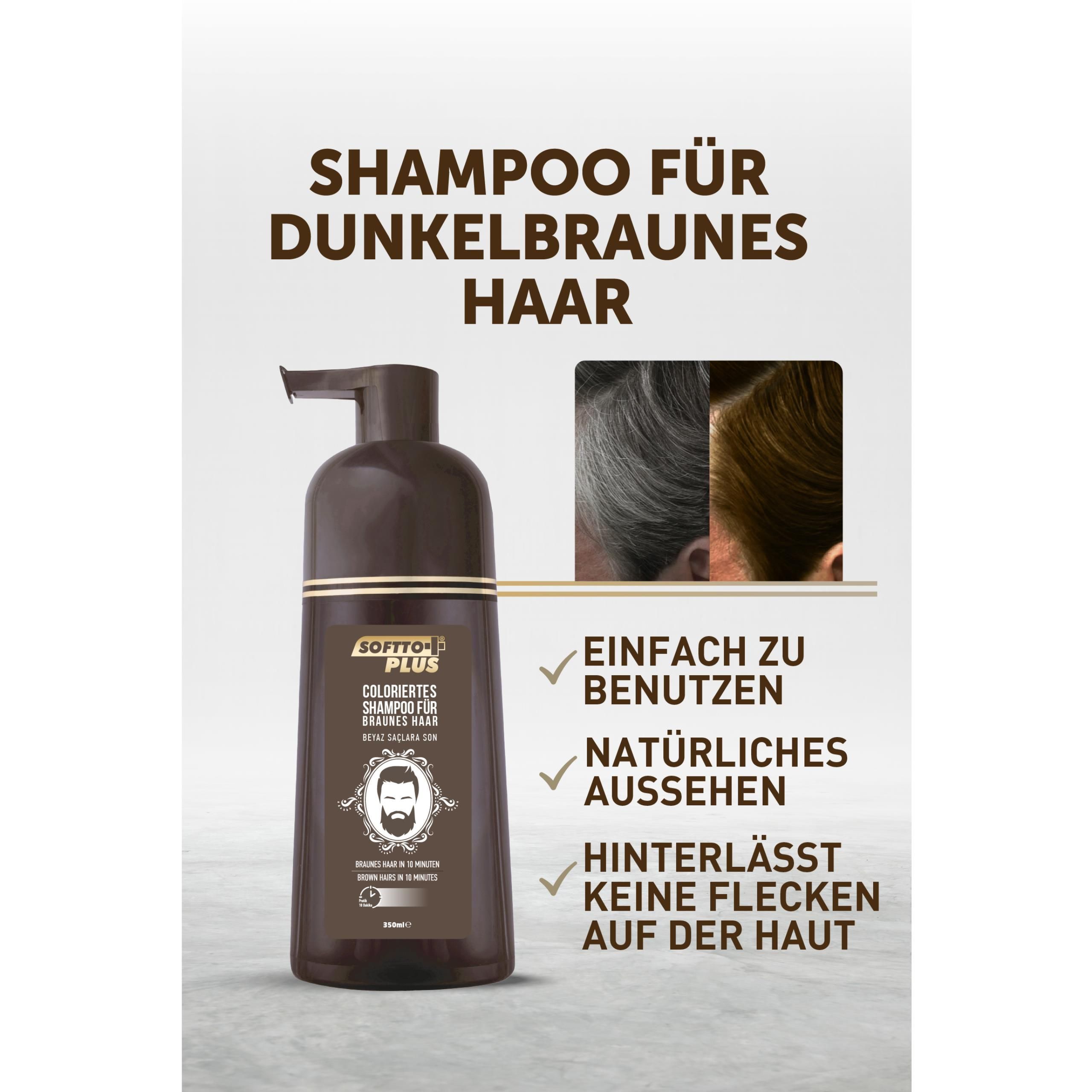 Softto+Plus Brown Hair Shampoo, Abdeckung weißer&grauer Haare
